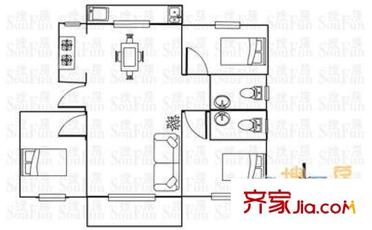 望族新城91.88㎡房型: 二房; 面积段: 91.88 -114.58 平方米;户型