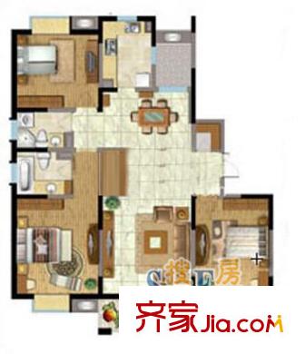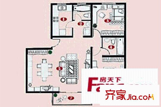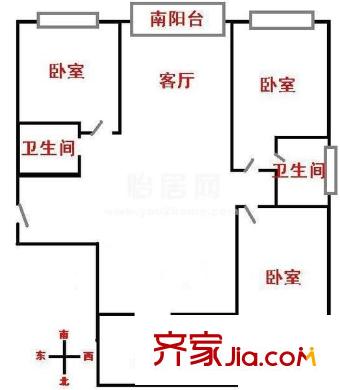 北欧丽景户型图东川花园二期 3室 户型图 3室2厅2卫1厨