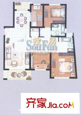 东苑新天地户型图二期A型 户型图 3室2厅2卫1厨
