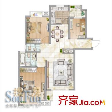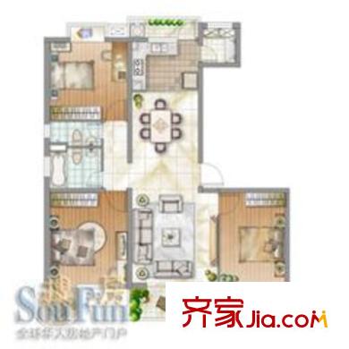 东苑新天地户型图三期户型 3室2厅2卫1厨