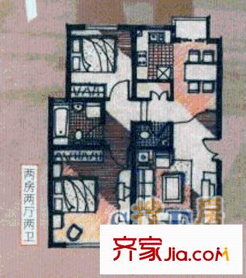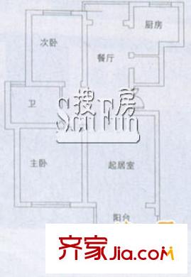 东苑新天地户型图二期C型 户型图 2室2厅1卫1厨