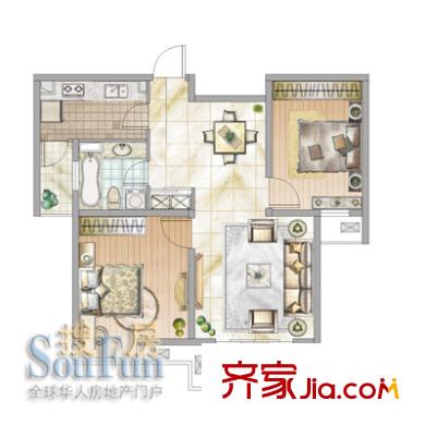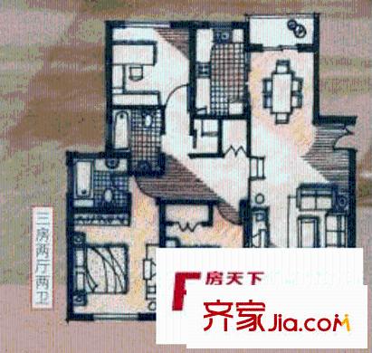 东苑新天地户型图二期A型 户型图 3室2厅2卫1厨