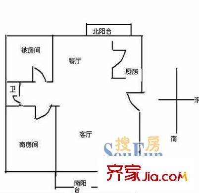 闵富大厦户型图户型图 2室2厅1卫1厨