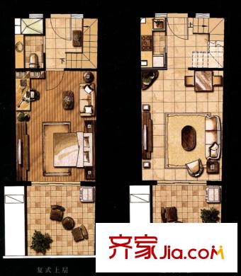原公馆C户型复式两房户型图 1室2厅1卫1厨