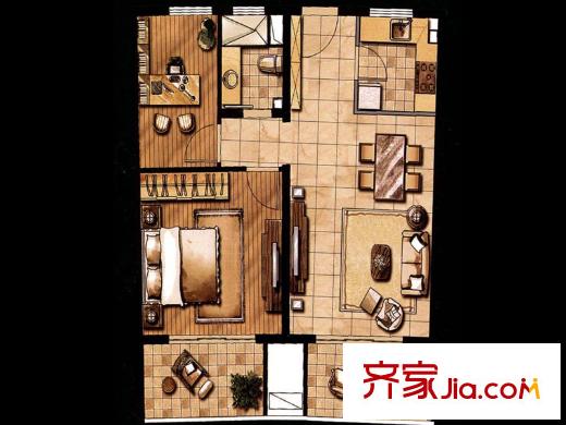 原公馆B户型舒适两房户型图 2室2厅1卫1厨