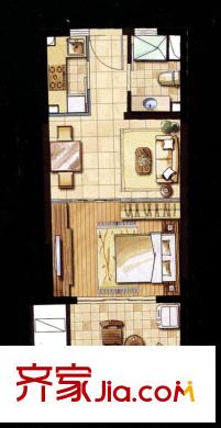 原公馆A户型舒适一房户型图 1室2厅1卫1厨