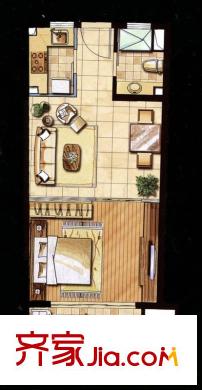 原公馆C户型精致一房户型图 1室2厅1卫1厨