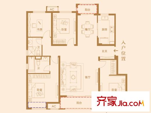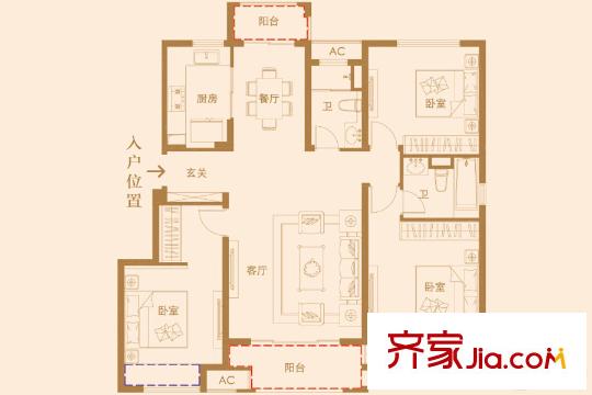 中海・凤凰熙岸V1户型 4室2厅2卫1厨