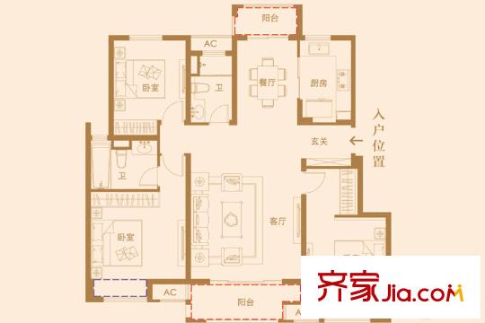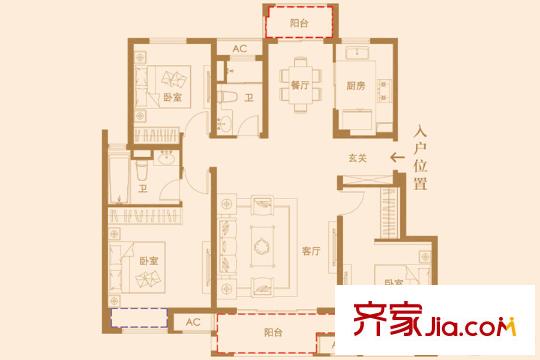 中海・凤凰熙岸V3户型 3室2厅2卫1厨
