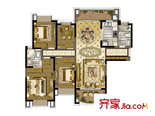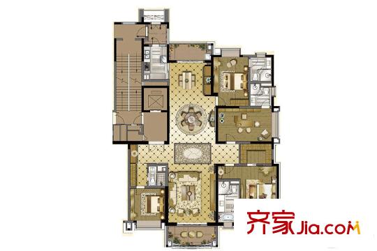 雅居乐中心广场260平户型图 4室3厅4卫1厨