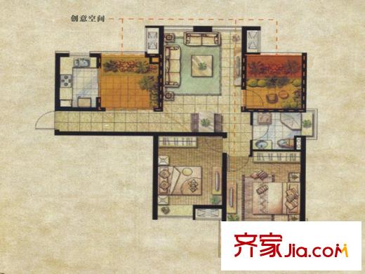 达安上品花园A4户型 2室2厅1卫1厨