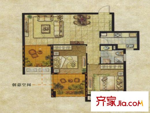 达安上品花园A2户型 2室2厅1卫1厨