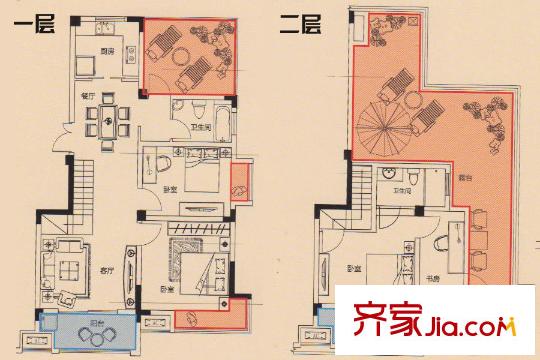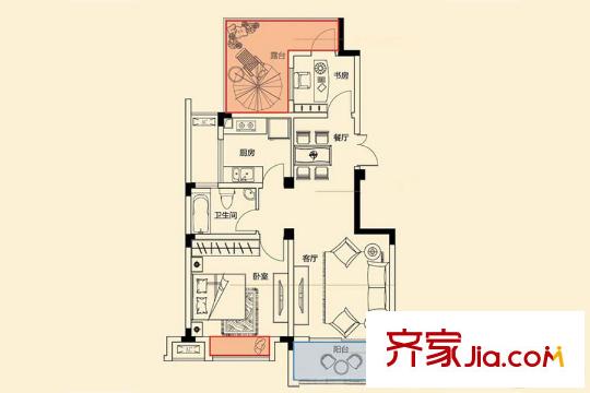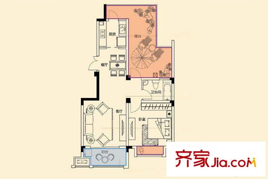 金轮星光名座生活广场丽景世家跃层户型 3室2厅2卫1厨
