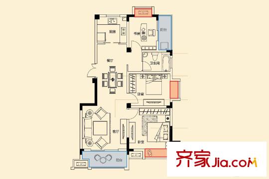 金轮星光名座生活广场悦景户型 3室2厅1卫1厨