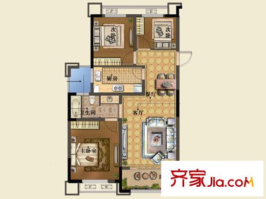 香梅・香墅A户型 3室2厅1卫1厨