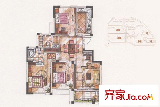 长江国际・朗庭C户型 3室2厅1卫1厨